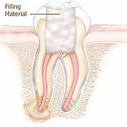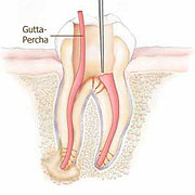 The canals are filled with a permanent material, often gutta-percha. This helps to keep the canals free of infection or contamination. |